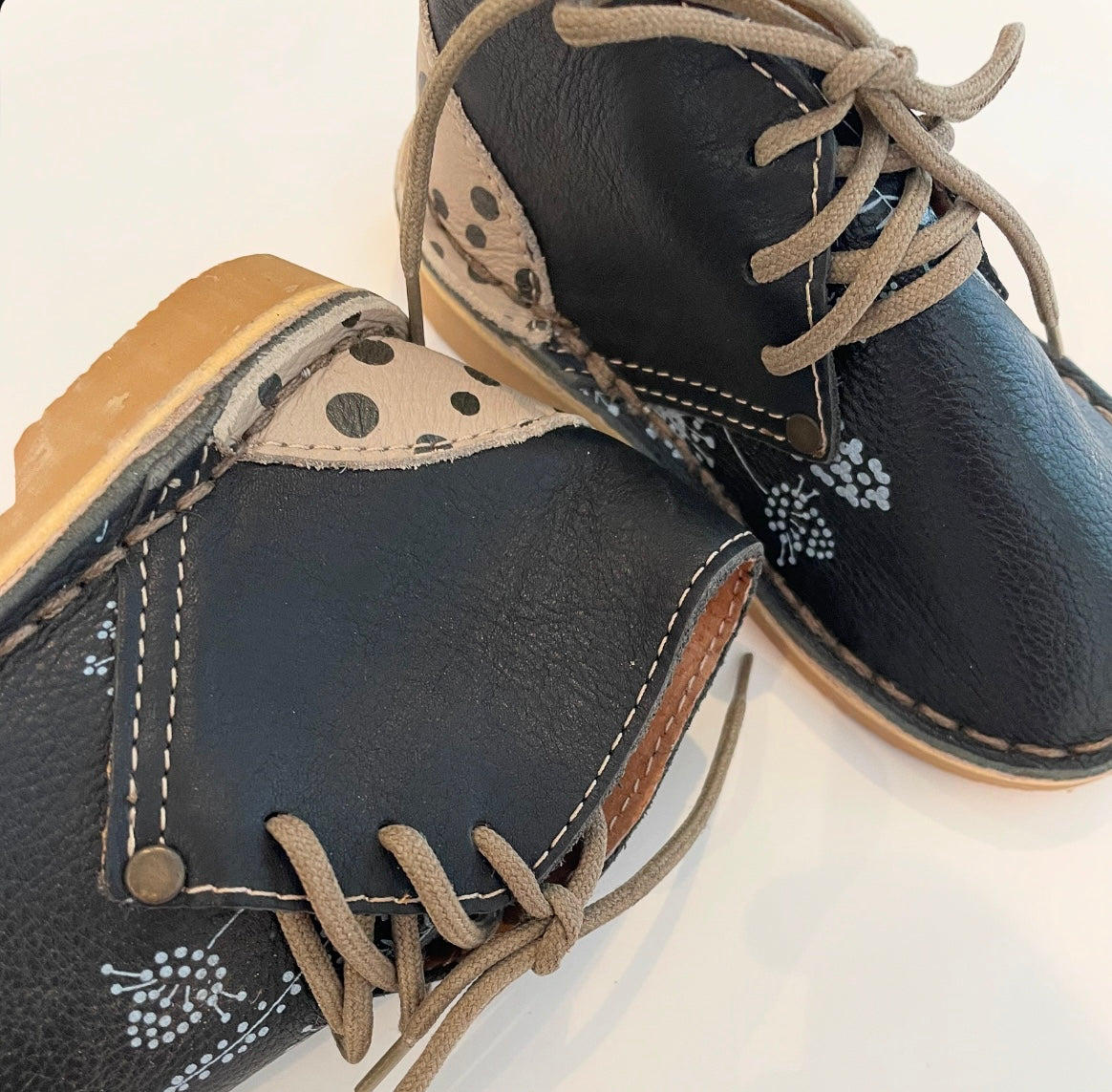 Individually handcrafted, locally made leather vellies for toddlers.